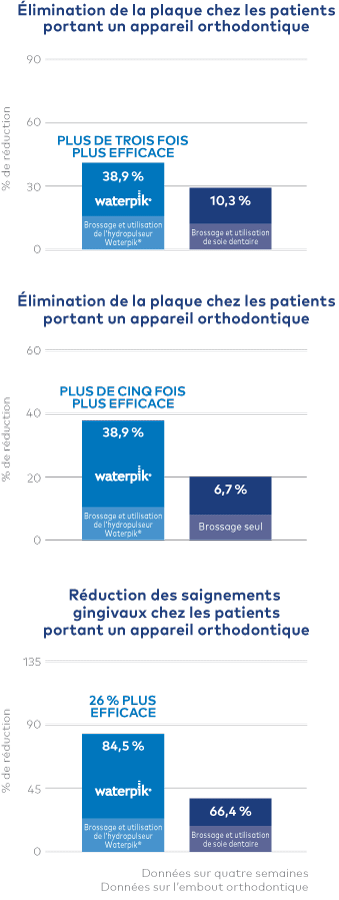 Les preuves scientifiques provenant de centres de recherche indépendants et universitaires montrent que l'hydropulseur WATERPIK est une alternative simple et plus efficace que le fil dentaire et le fil dentaire interdentaire.